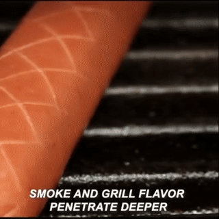 - 🥓 PUSH this slicer down on the hot dog with a rocking motion to pierce and slot your hot dog.